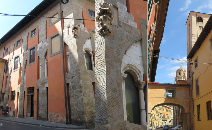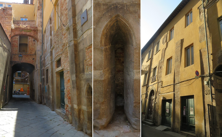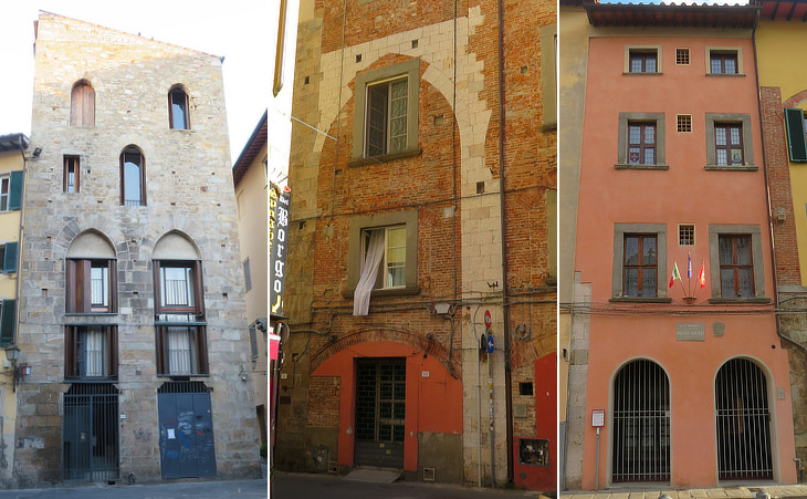 Tower houses near Borgo Stretto: (left) Via Domenico Vernagalli 15; (centre) Via dei Mercanti; (right) Casa Ammannati in Via Giusti where Galileo Galilei was born