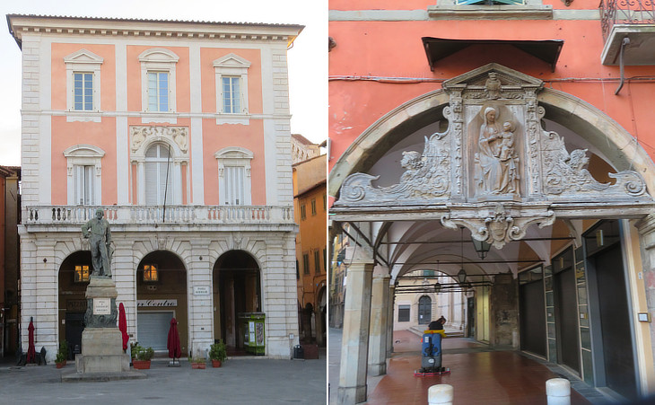 Piazza Garibaldi: (left) Casino dei Nobili; (right) Madonna dei Vetturini (Coachmen) at the beginning of Borgo Stretto