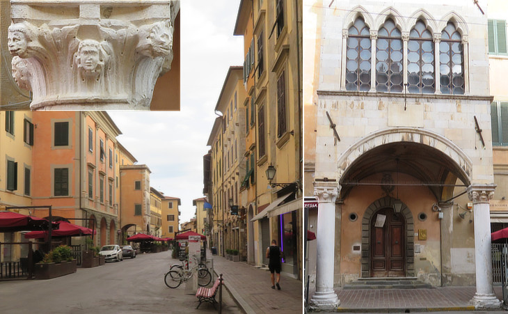 (left) Borgo Largo; (right) Palazzetto Scorzi; (inset) a capital of Palazzetto Scorzi