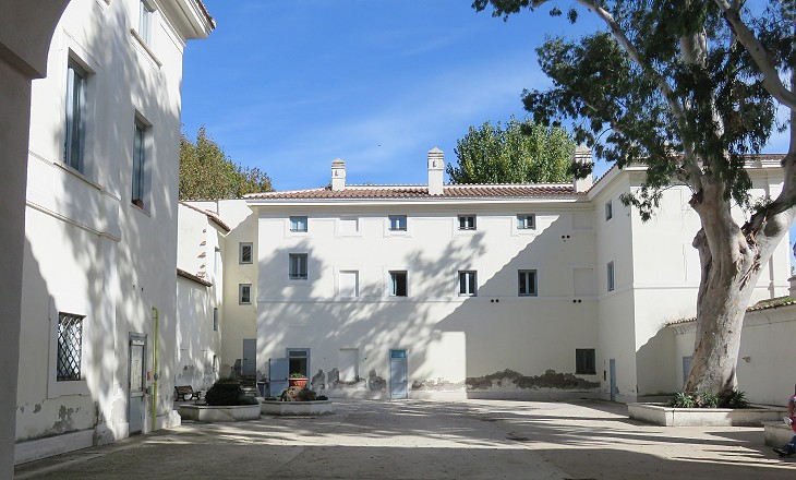 Episcopio di Porto: (left) entrance from the sea side (late XVth century); (right) 1771 entrance from Rome