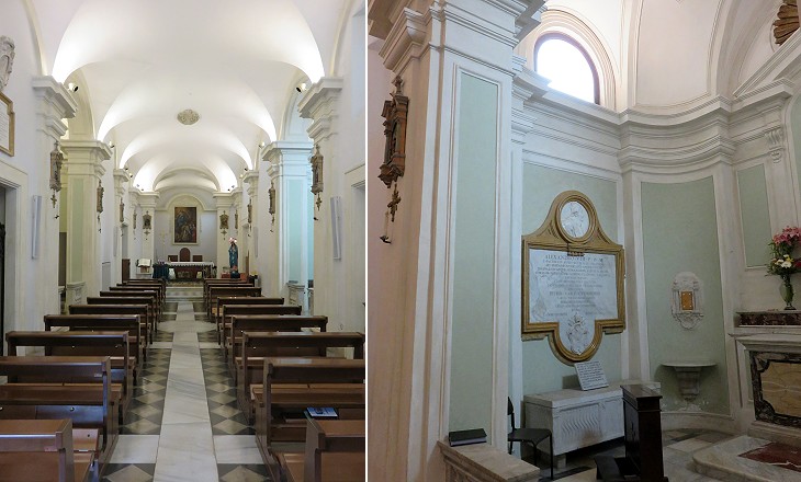SS. Lucia e Ippolito: (left) interior; (right) chapel which was built by Cardinal Pietro Ottoboni in 1735