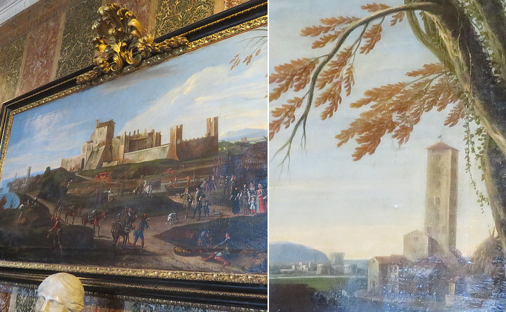 XVIIIth century anonymous painting at Palazzo Chigi of Ariccia: (left) Fiumicino and Castello (Episcopio) di Porto; (right) S. Ippolito and Castle of Pope Julius II at Ostia