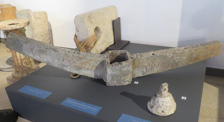 Museo delle Navi di Fiumicino: lead anchor, sounding lead and mooring stone