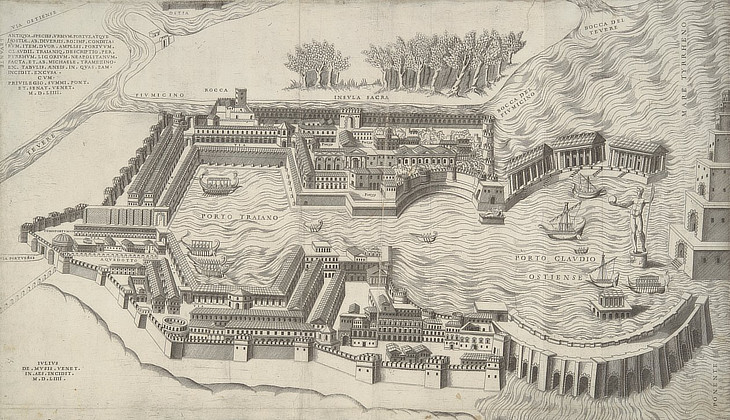 View of ancient Porto by Pirro Ligorio (1554), upon which a 1582 fresco in the Vatican was based
