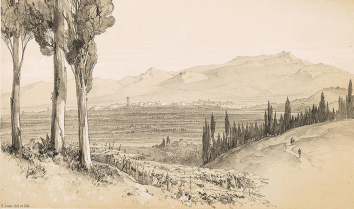 Rieti in an illustration from "Edward Lear - Illustrated Excursions in Italy - 1846"