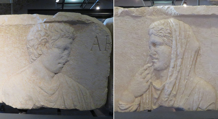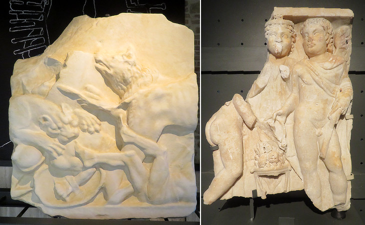 (left) Relief from a funerary monument (Ist century AD); (right) fragment of a sarcophagus (IIIrd century AD)