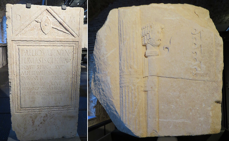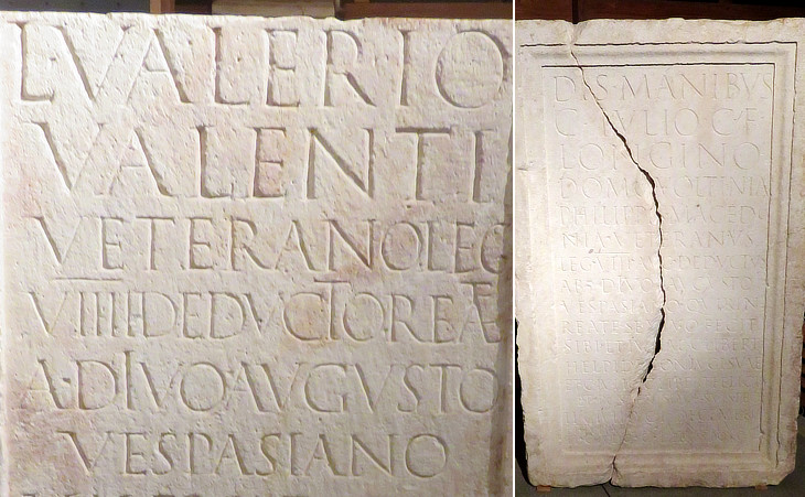 Tombstones: (left) Lucius Valerius Valens; (right) C. Iulius Longinus