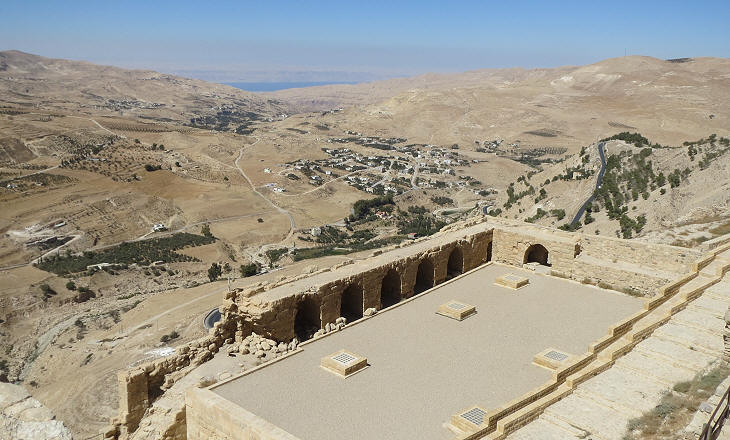 View westwards from the Castle of Kerak: in the distance the southern section of the Dead Sea