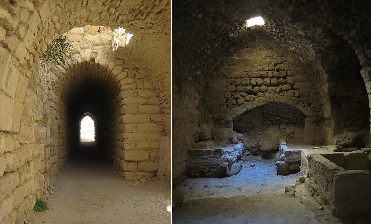Castle of Kerak: (left) underground passage; (right) kitchens