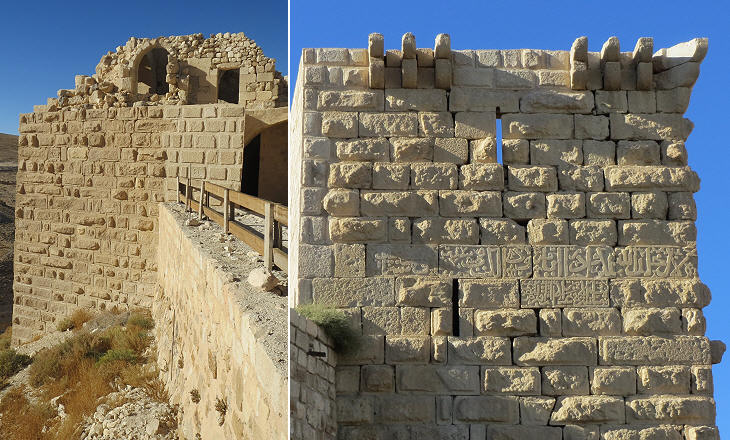 Castle of Shobak: towers, one of which bears an inscription in large Kufic characters (you might wish to see a gigantic Kufic inscription at Diyarbakir)