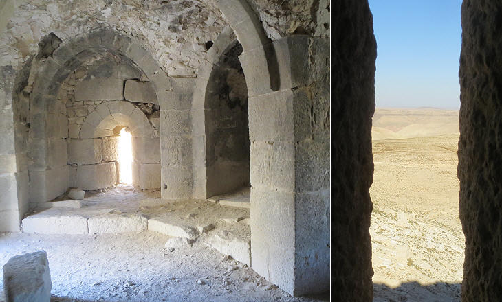 Castle of Shobak: (left) Mameluke bastion: (right) view westwards from an arrow-slit