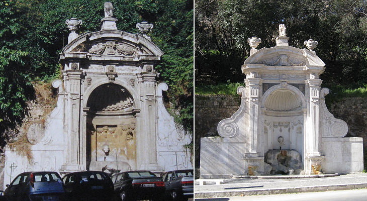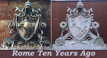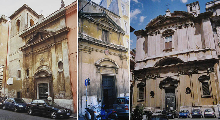 A particular effort was made to improve the appearance of churches; some of them, as those shown above, were in bad need of being repainted. They all have gained from the process, although some art historians complain that their new colours are too bright and that they suit Amalfi or Positano better than the Eternal City.