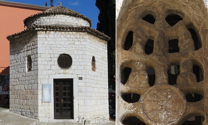 This small heptagonal building, which eventually was utilized as a baptistery, is dated ca VIIIth century and it stands outside the town walls near the site of the bridge which linked Rovigno to the mainland. After the Roman period the town was first recorded in a chronicle of 804.