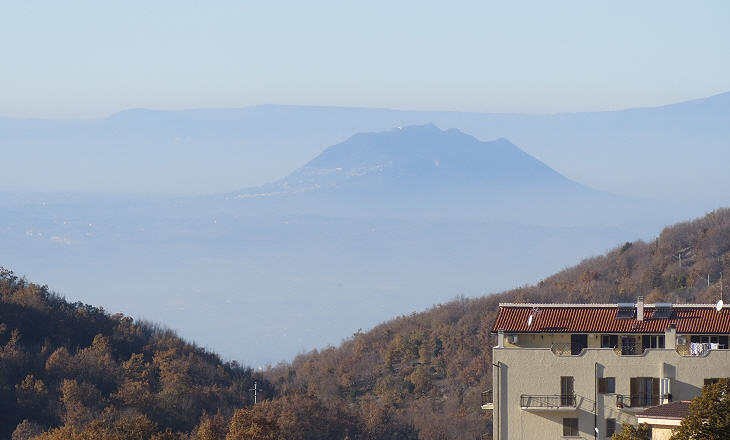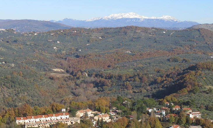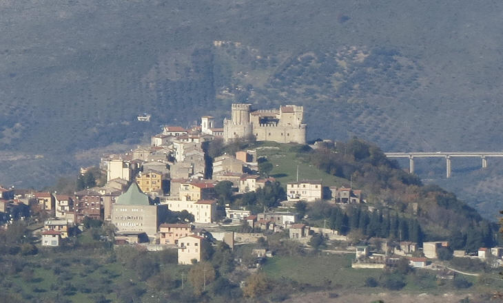 Nerola and Castello Orsini seen from Montorio (the viaduct in the background is part of modern Via Salaria)