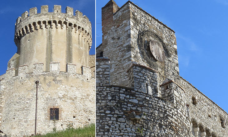Castello Orsini: (left) main tower; (right) Torre dell'Orologio: the clock indicated the Italian Hour