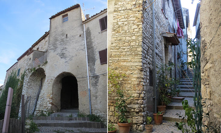 (left) Tower protecting the entrance to Nerola; (right) one of the streets leading to the castle
