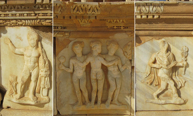 Reliefs portraying Hercules (left), the three Graces (centre) and Hermes (right)
