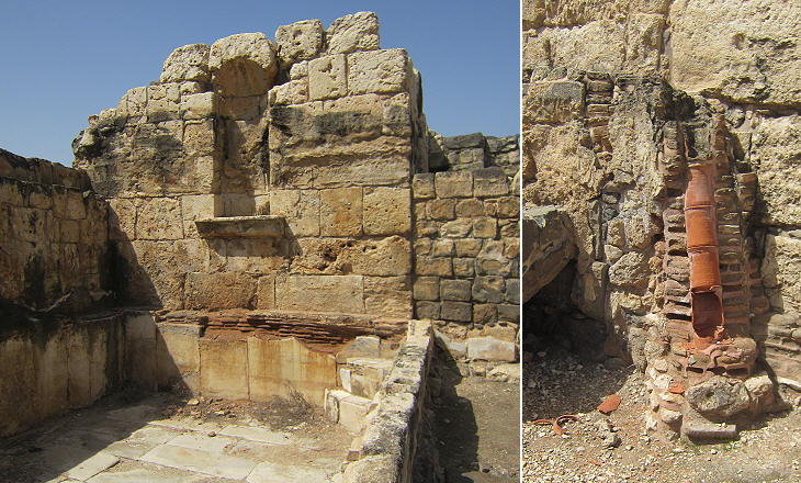 Eastern Baths: (left) a pool; (right) pipes of the heating system