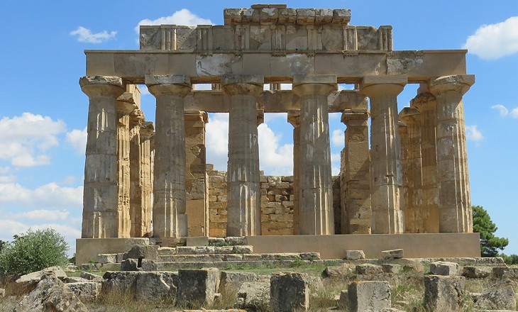 In 1959 Temple E, the southernmost of the three temples and that which had collapsed in an orderly way was reassembled. It has since become the symbol of Selinunte.
