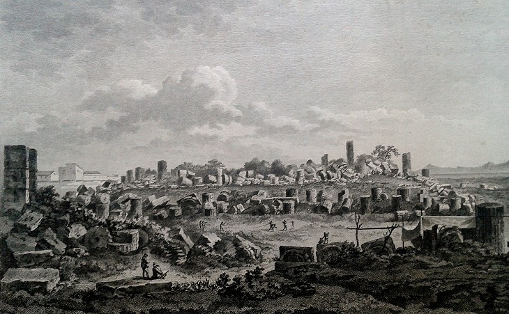 The temples on the eastern hill in an etching from "Voyage pittoresque à Naples et en Sicile" by Jean-Claude Richard de Saint-Non which was published in 1795