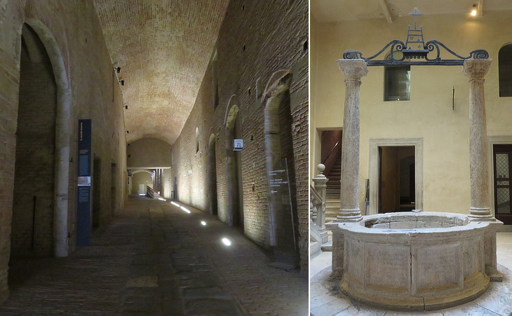 (left) Underground passages; (right) Renaissance well near the entrance to the complex