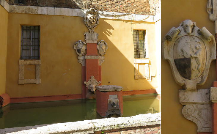 (left) Fonte di San Maurizio (outside Porta S. Maurizio); (right) coat of arms of Siena