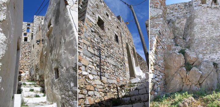 The Querini built a fortified citadel which included a church and their own palace. The access to it was protected by the peasants' houses and it could only be reached via a maze of narrow streets. In the XIVth century the rule of the Querini was challenged by the Byzantines and by the Ottomans who were able to temporarily seize the island, but the Querini always managed to come back.