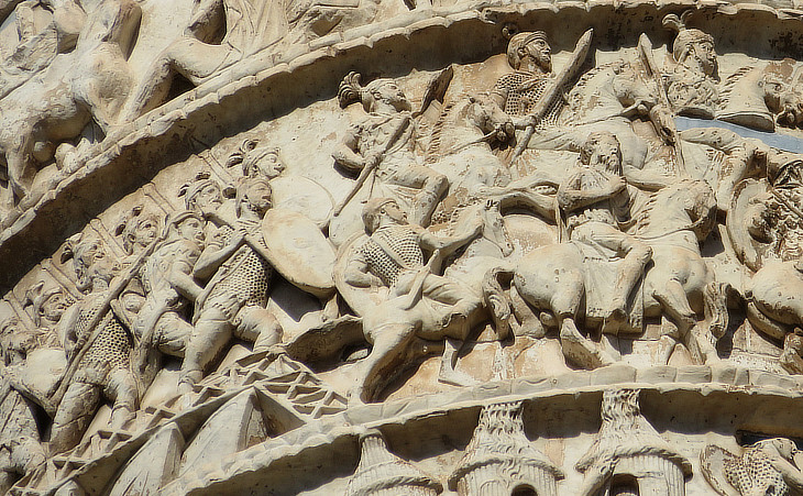 Colonna Antonina: Marcus Aurelius leads the Roman army across a river