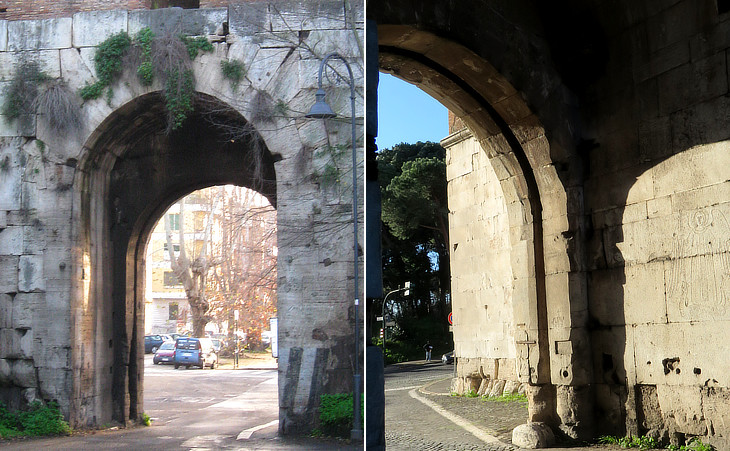 (left) Porta Latina seen from Rome; (right) Porta S. Sebastiano: opening