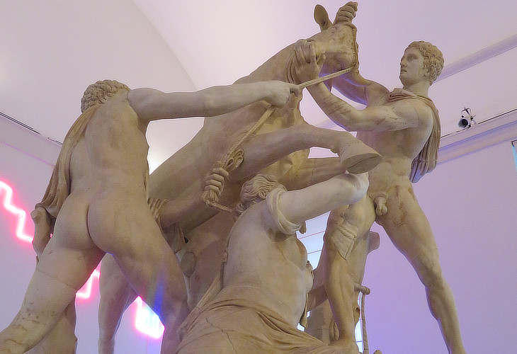 Archaeological Museum of Naples: detail of The Punishment of Dirce aka the Farnese Bull, a colossal statue which was expressly made to decorate the eastern palaestra of Caracalla's Baths in Rome