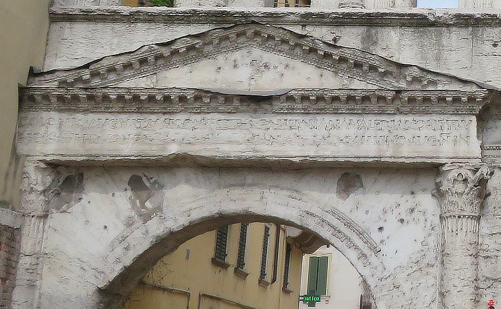 Detail of the inscription at Porta Borsari at Verona in which the town is referred to as "Colonia Augusta Verona nova Gallieniana"