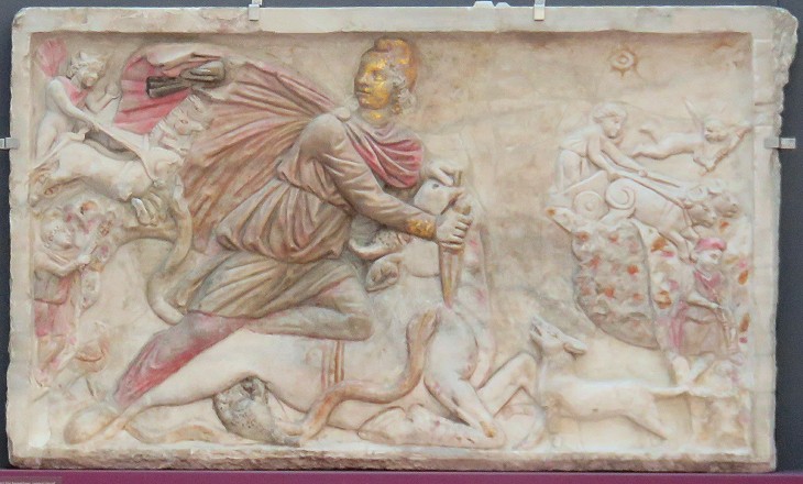 Relief portraying Mithra killing the Bull which was found in a mithraeum underneath S. Stefano Rotondo
