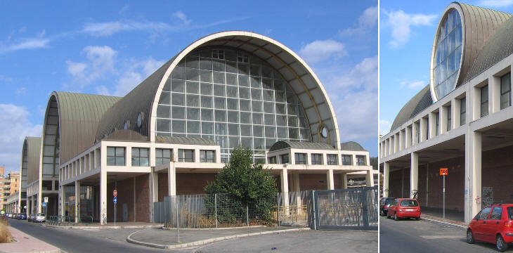 Pier Luigi Nervi (1891-1979) explored the potential of prefabrication and reinforced concrete to create very novel buildings which could be erected in a short time and at a low cost. His view was that Beauty does not come from decorative effects but from structural coherence. He was involved in some very large projects, e.g. an Audience Hall in the Vatican City, but Palazzetto dello Sport is still his most admired creation. You can see it in your way to the Auditorium designed by Roberto Piano in 1994.