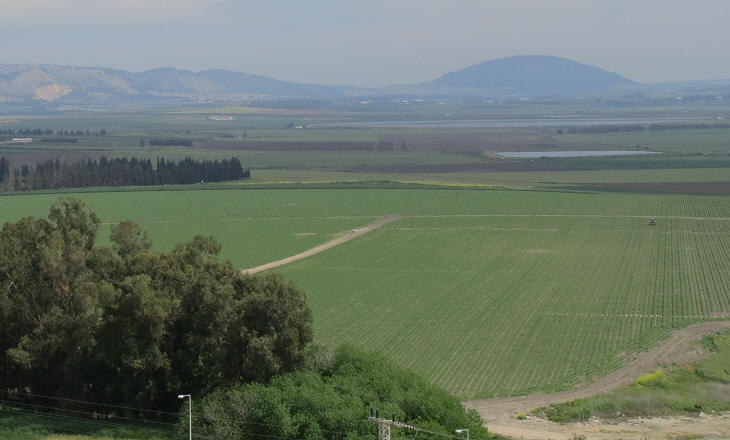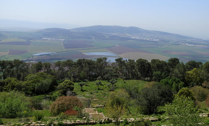 Jezreel Valley and Mount Tabor seen from Megiddo, an ancient fortress; you may wish to see Mount Tabor from Belvoir, a fortress of the Crusaders, in the introductory page