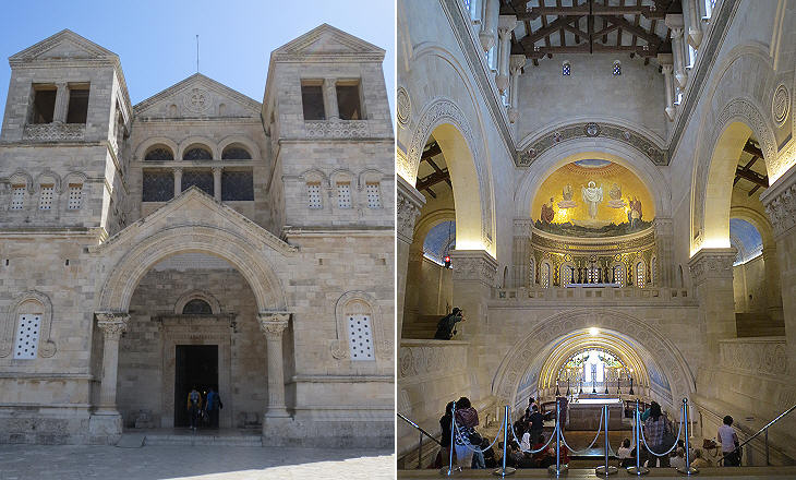In 1938 Italian architect Antonio Barluzzi designed a large church attached to a Franciscan nunnery. Barluzzi (1884-1960) spent most of his life in the Holy Land where he built several churches in different styles, e.g. Dominus Flevit on the Mount of the Olives.