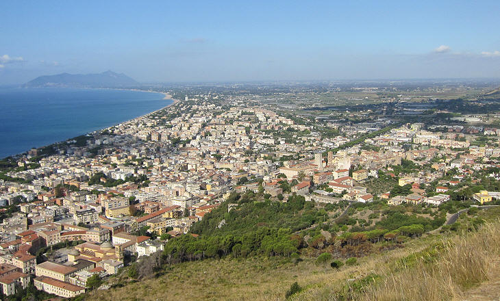 View from the Temple of Jupiter Anxur on Monte S. Angelo: in the centre of the image medieval Terracina;