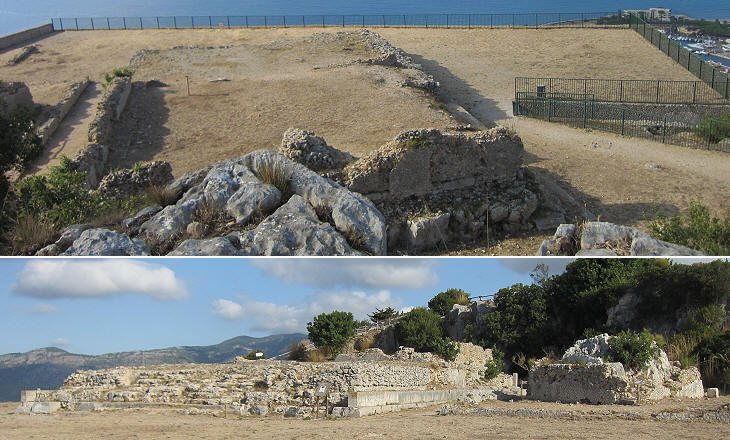 (above) Monte S. Angelo seen from the site of the ancient harbour; (below) the structures supporting the Minor Temple (left)