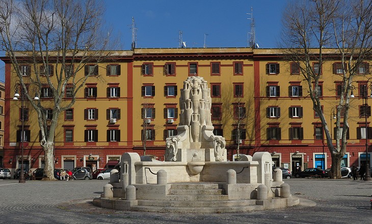 Main square of Testaccio with the fountain by Pietro Lombardi which is the symbol of the "rione"