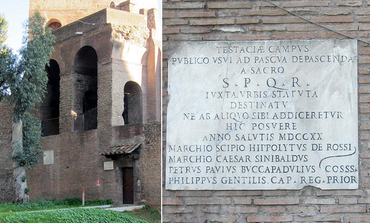 1720 inscription at Porta S. Paolo stating the public use of the meadows around Monte Testaccio