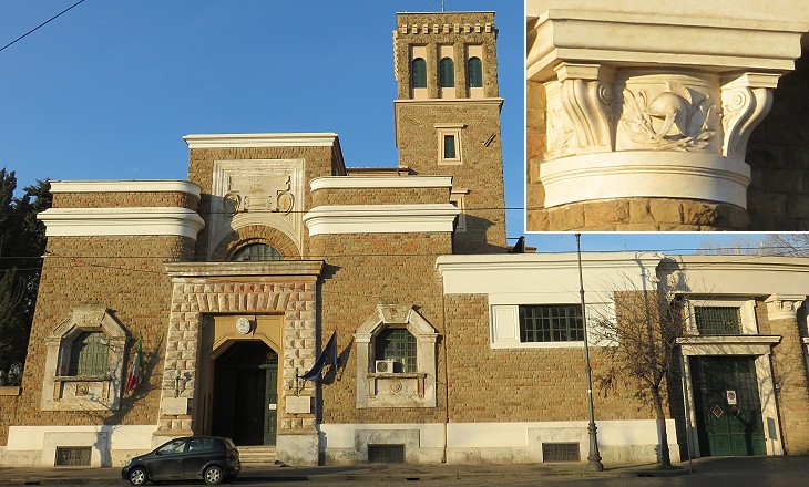 Testaccio has some interesting examples of the architectural trends prevailing in Rome during the Fascist period (1922-1943). This Fire Station was designed by Vincenzo Fasolo and it was completed in 1929; it assembles elements of classic and medieval styles, with even a touch of Ancient Egypt in the design of the portal and the window of the tower (which is shown also in the image used as background for this page).