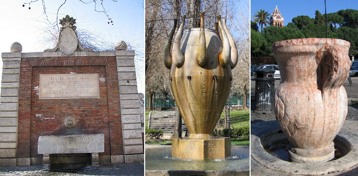 In 1870 Pope Pius IX celebrated with an inscription near the river the first excavations in the area: it is most likely the last inscription he placed in Rome, because in that same year the city was conquered by the Italian troops. The sarcophagus is a 1940s addition when the street along the river was redesigned. Several modern fountains of Testaccio make reference to the symbol of the rione.