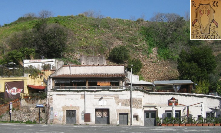 Monte Testaccio, with its excavated caverns housing rowdy wine bars and stables, was not touched by the development of the new quarter and its inhabitants were proud of the new rione symbol, a testae, the amphorae used by the ancient Romans to contain wine and oil.