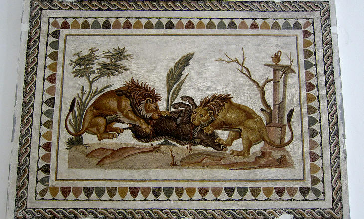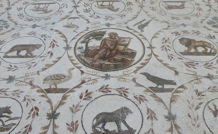 Mosaic of Orpheus taming the animals (similar to another one shown in the page)