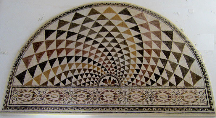 Decorative mosaics eventually developed patterns which were entirely meant to obtain an aesthetic effect with no links to real things or mythical personages. In essence it was an early form of abstract art. See similar mosaics at Cirta in Algeria, Dion in Greece and Salamis on Cyprus.