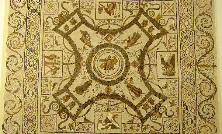 Mosaic from the House of the Months (the same of the Mosaic of the Nine Muses) at Thysdrus showing the Four Seasons and the Twelve Months