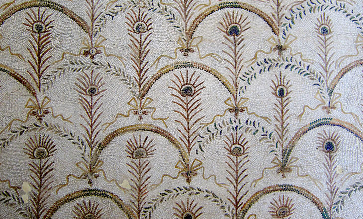 This very decorative mosaic depicting peacock feathers has a link to Greek myths.