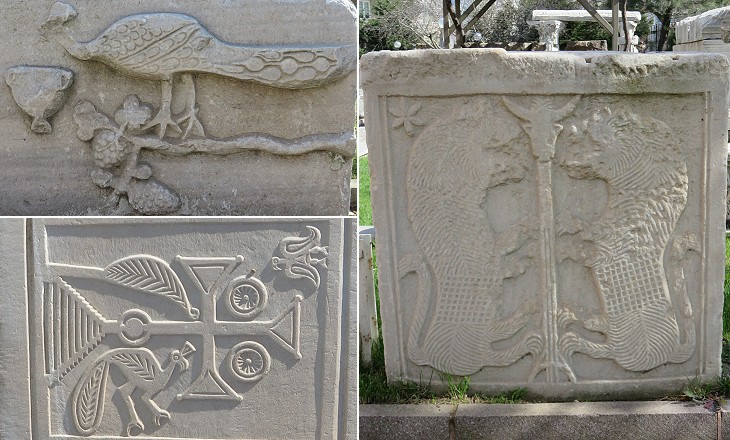 (left) Early Christian reliefs; (right) emblem of the Karasid rulers of Troas in the XIVth century. It is similar to that of the Mentese at Becin Kalesi