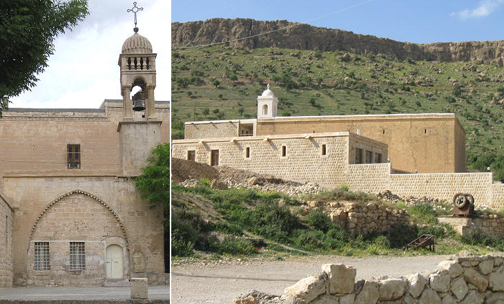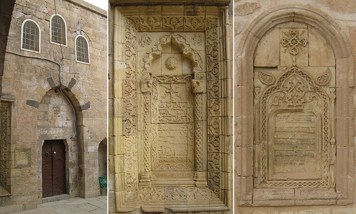 Kirklar Sehit Kilisesi aka Mor Behnam (St. Behanan) Kilisesi: (left) portal; (right) details of its reliefs