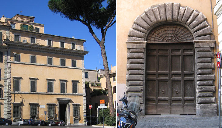 In 1939 the eastern corner of the building was cut to enlarge the street. As a result the balcony at the attic level enjoys a terrific view over the twin steps leading to Piazza del Campidoglio and to S. Maria d'Aracoeli. The little tower on the roof terrace is a XIXth century addition. Apart from these changes the palace retains the appearance it was given in 1695 when Carlo Fontana redesigned it. The elegant portal became a model for the architects of the XVIIIth century.