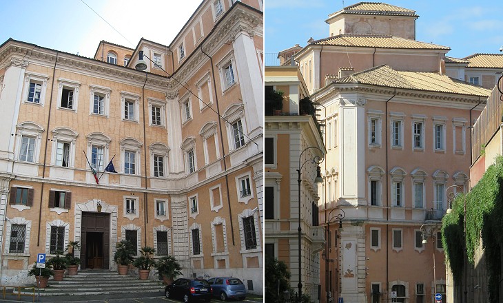 Palazzo Cimarra: (left) façade; (right) seen from a distance